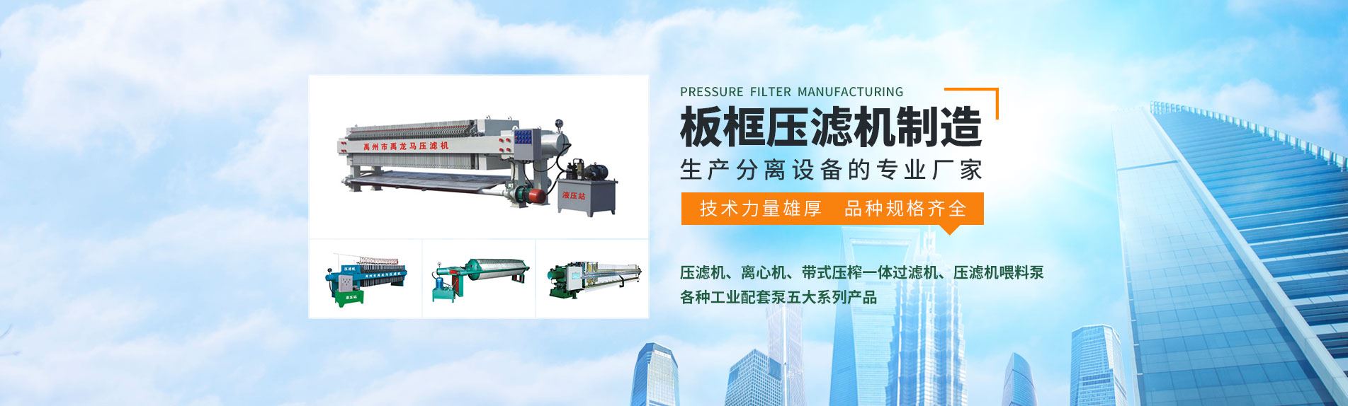 禹州市龍馬壓濾機制造有限公司是生產分離設備的廠家,技術力量雄厚,加工設備精湛,經驗豐富,品種規格齊全,質量可靠,性能穩定,結構合理,供貨及時,產品暢銷各地,深受用戶好評。 我廠生產壓濾機已有多年歷史,總人員38人,廠區總面積8600平方米。主要生產壓濾機、離心機、帶式壓榨一體過濾機、壓濾機喂料泵及各種工業配套泵五大系列產品。 壓濾機型號有:200、320、450、630、800、1000、1250、1500、2000、Φ800、ΦIOOO型板框式及廂式,過濾機面積0.5㎡—2000㎡。板框材質有鑄鐵、增強聚丙烯、玻璃纖維聚丙烯(耐高溫120℃)及不銹鋼板框等。壓緊形式有手動壓緊、機械壓緊、千斤頂壓緊、液壓壓緊、自動保壓壓緊及微機控制、全自動壓緊等。過濾形式有明流、暗流、明流可洗、暗流可洗和雙向交叉洗滌等。產品廣泛用于石油、化工、制藥、制糖、冶金、食品、陶瓷、淀粉、造紙、洗煤、污水處理等作液